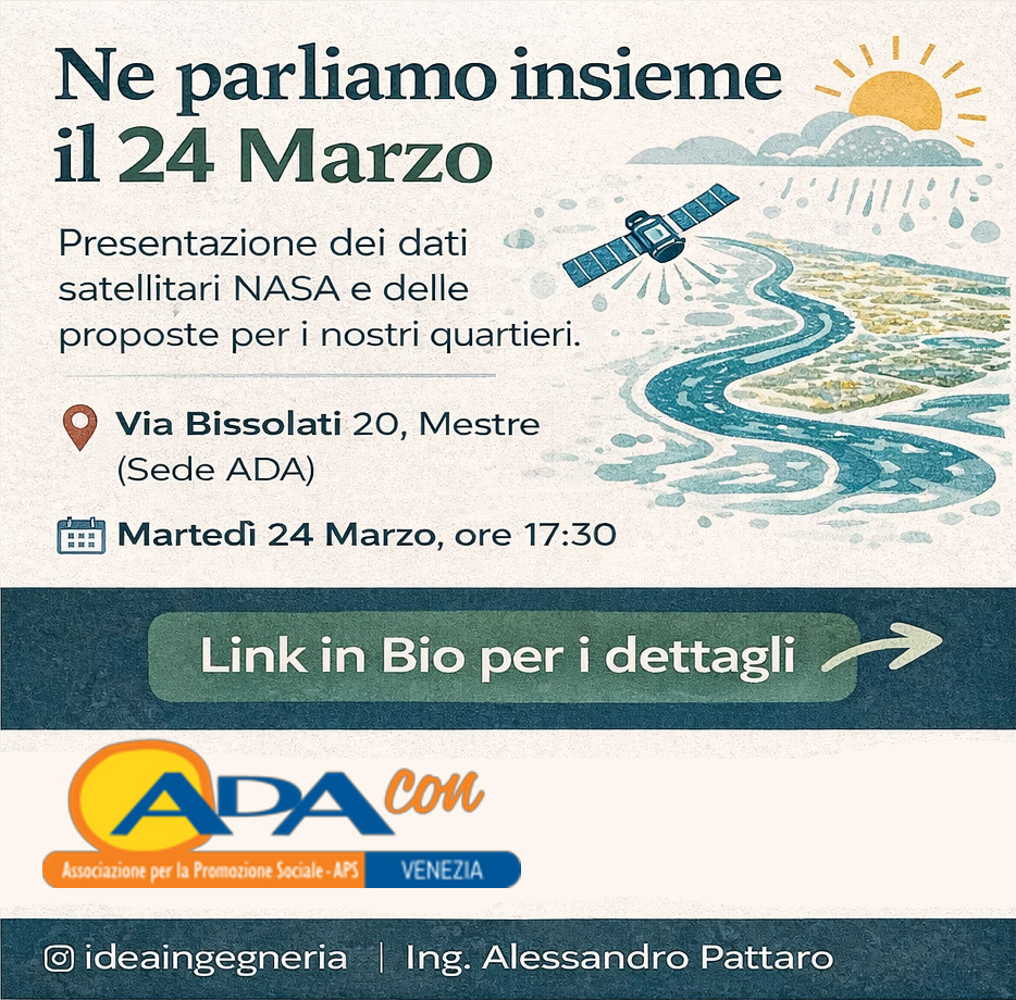 ,,, Il dato scientifico (Landsat, NDWI e Citizen Science). Martedì 24 Marzo 2026 ci incontreremo a Mestre per parlare di sicurezza idraulica. Oggi, nella Giornata Mondiale della Meteorologia, riflettiamo sull’importanza dei dati per comprendere i cambiamenti in atto. Grazie alla collaborazione con l’Università di Padova (Dipartimenti di Idraulica e Biologia) e al prezioso contributo dei…